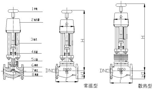 精小型电动单座调节阀上阀盖:◇常 温 型:-20℃-+200℃